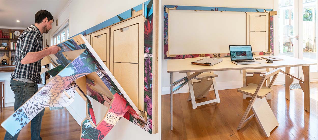 Snap Jack Une Table Et Des Chaises Pliantes S Accrochent Au Mur
