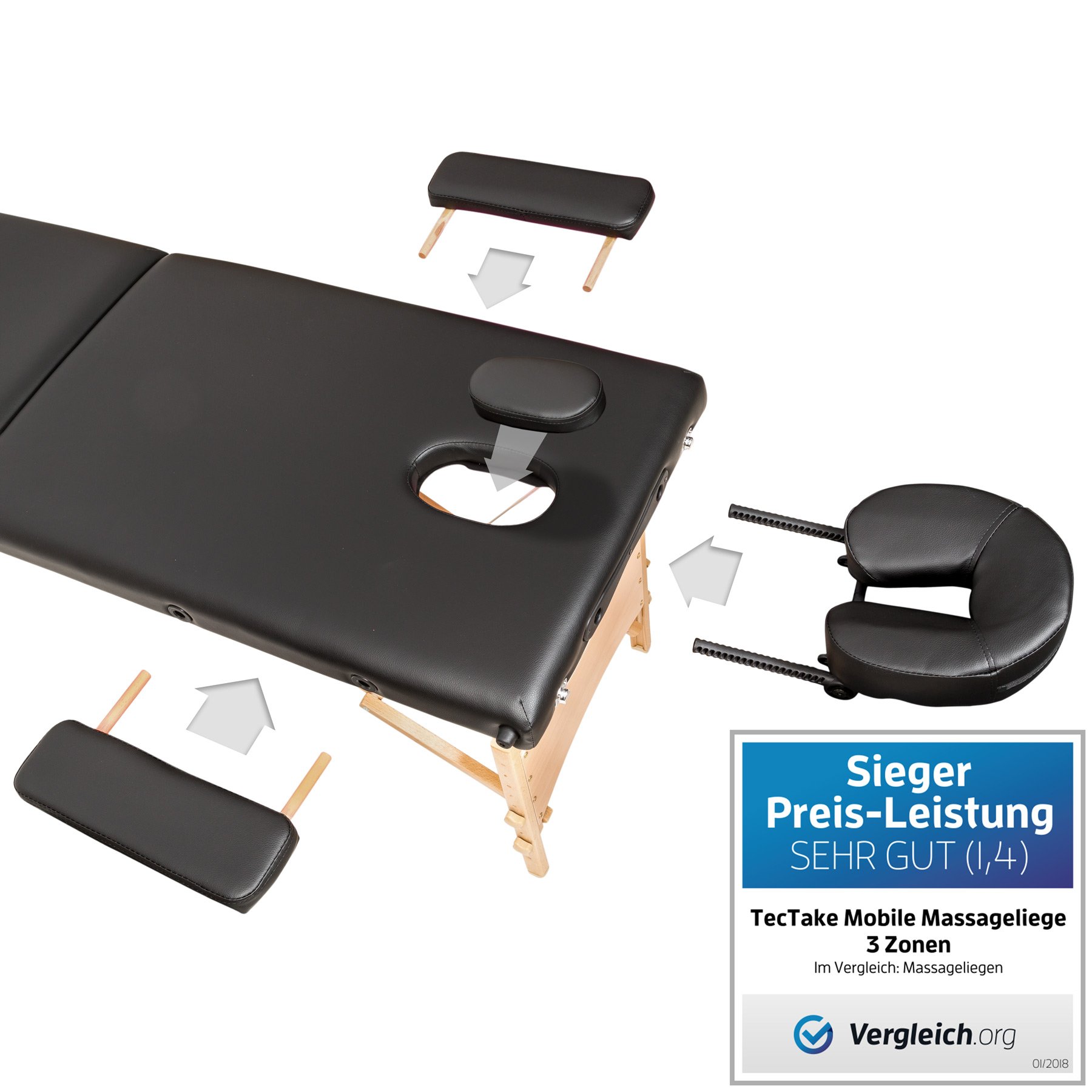 Tectake Table De Massage Pliante 3 Zones Noir Housse De