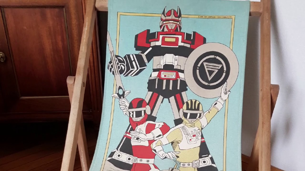 Chaise Pliante Chilienne Transat Bioman Toei 1988 En Bois Et Tissu