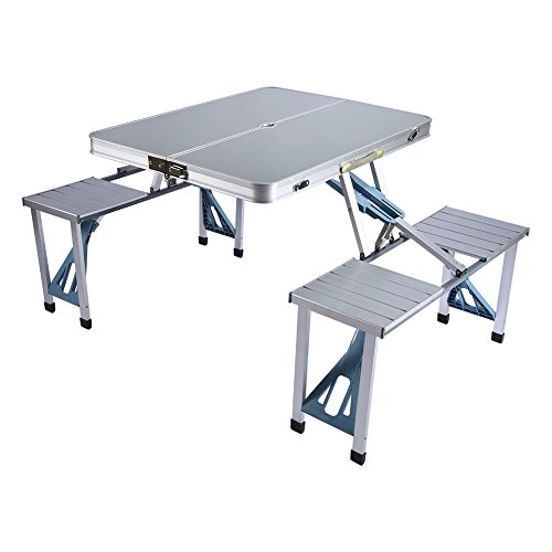 Luxs Ensemble Table Pliante Valise Avec 2 Bancs Portable Aluminium