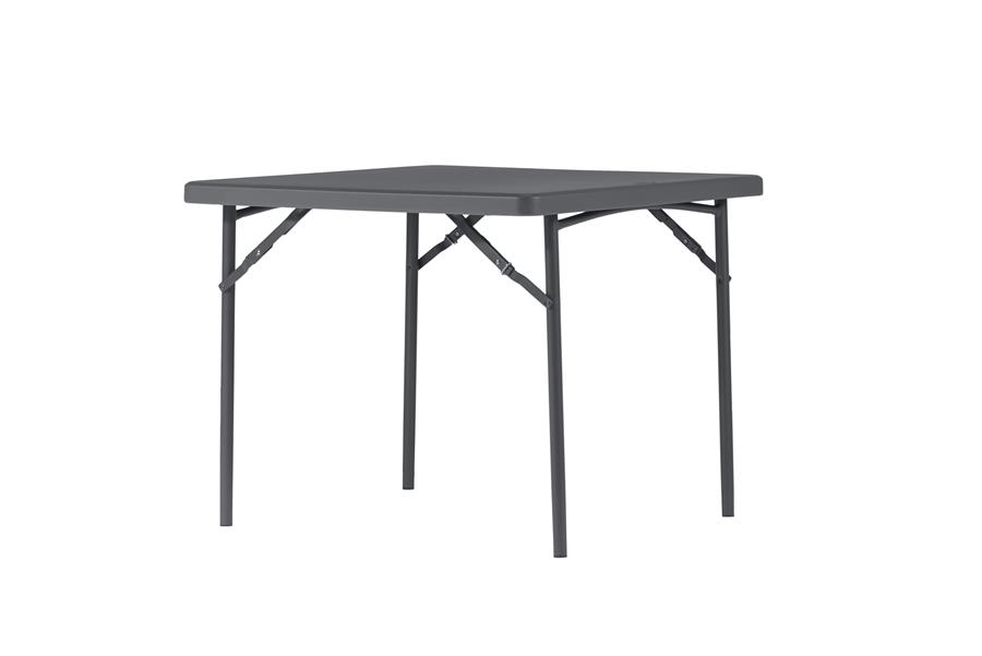 Table pliante de collectivite carree le modele de mobilier professionnel xxl90 a un plateau moule en polyethylene haute densite hydrofuge.
